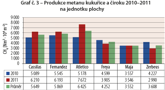 Pri mernej produkcii metánu 288 Nm3 / t siláže to predstavuje produkciu v rozmedzí 4 608-5 184 Nm3 / ha.