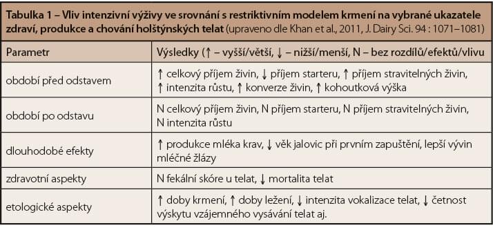 Posledných niekoľko rokov sa všeobecne od modelu reštriktívny výživy celosvetovo upúšťa (najmä Kanada, EÚ), a to z mnohých dôvodov. Najprv, v poslednom desaťročí bola publikovaná celá rada vedeckých prác, ktoré vyvracajú výhody obmedzujúci výživy teliat, a to v porovnaní so semiintenzivní a intenzívne výživou teliat. Ide najmä o skutočnosť, že zachovanie konštantného objemu mliečneho nápoja, po celú dobu odchovu na úrovni 4 až 5 l na teľa a deň, je dnes už celosvetovo považované za podnecovanie k chronickej podvýžive teliat. Ako bolo vyššie napísané, len potreba záchovnej energie u teliat s hmotnosťou 40 až 50 kg je na úrovni 3,3 kg plnotučného mlieka, a to nie je počítané napr. S energiou navyše v prípade mrazivých zimných mesiacov, nebaví sa vôbec o potenciáli zvyškového objeme mliečneho nápoje, a to vo vzťahu k požadovanej prírastkové báze. Celosvetové vedecké štúdie jasne už viac ako 15 rokov jasne dokazujú, že teľatá kŕmené reštriktívne, vykazujú veľmi nízku intenzitu rastu (často ≤ 0,75 kg / teľa / KD od narodenia do odstavenia), vyššie riziko morbidity a mortality teliat, vyššia frekvencia výskytu abnormálneho správanie a výrazne nižšiu celkovú úroveň welfare. Reštriktívny model výživy teliat nie je z nášho pohľadu tou správnou chovateľskou voľbou. Už dnes vieme, že lepšia kvalita a vyššia intenzita výživy teliat počas prvých 2. až 3. mesiacov života, priaznivo a dlhodobo ovplyvňuje ich metabolizmus a fyziologické funkcie, čo sa prejavuje aj následným dosahovaním lepších ukazovateľov zdravia, rastu, produkcie a reprodukcie. Túto zavčas postnatálnu nutričné intervenciu s dlhodobými až celoživotnými efekty označujeme ako metabolické programovania teliat. Efekty intenzívnej výživy v porovnaní s reštriktívnym modelom výživy teliat sú zhrnuté v tabuľke 1.