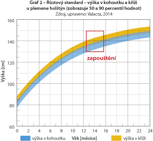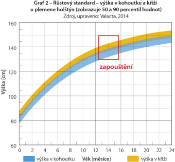 Pri posudzovaní správnej doby pre prvú zapustenie jalovíc nesledujte len požadovaný vek zvierat, ale zamerajme sa na dosiahnutie adekvátnej hmotnosti a predovšetkým rámca - výšky zvierat, čo je pre zhodnotenie telesného vývoja jednoznačne vhodnejšie parameter.