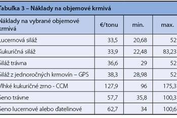 Percentuálne rozdelenie nákladov na krmivá tvorilo najväčšiu položku z celkových vlastných nákladov, a to až 38,4 % a podiel vlastných a nakúpených krmív je blízky k pomeru 1,87 : 1 (vlastné 25 % a 13,4 % nakúpené krmivá z celkovej štruktúry, resp. 65,1 %: 34,9 %). Tieto náklady sa podieľajú významnou mierou na celkových vlastných nákladoch pri výrobe mlieka.