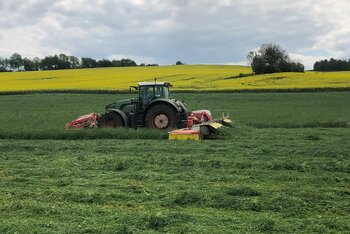 Tu je dôležitá rovnováha medzi výnosom a stráviteľnosťou krmovín. Čím skôr je porast pokosená, tým nižšia je stupeň lignifikace rastlín a vyššie mliečny potenciál zozbieranej krmoviny, avšak nižšia hektárový výnos. Ako lucerna, tak ďatelina by mali byť kosenia vo výške minimálne 8 cm nad zemou, aby nedošlo k poškodeniu spodnej časti rastliny a podporilo sa následné obrastanie. Táto výška kosenia umožňuje dostatočný pohyb vzduchu pod pokosenú krmivom pre rýchle zavadání. Lucerna a ďatelina sú krmoviny s nízkym obsahom cukrov a vysokou tlmivý kapacitou (vysoký obsah NL). Úroda s použitím valcového kondicionéra výrazne zrýchľuje zavadání krmovín a obmedzí sa pokles obsahu bielkovín. Prstové kondicionéry nie sú vhodné, spôsobujú vysoký odrol listov. Hygiena pri zbere pokoseného materiálu a silážovanie je vždy dôležitá, ale kvôli vysokej pufračnej kapacite oboch krmovín (potreba vyššia produkcia kyselín k dosiahnutiu stabilného pH) je nevyhnutné dosiahnuť optimálnu hygieny už pri kosení (nastavení žacej lišty s ohľadom na terénne nerovnosti), a následne aj pri nahrabování a zberu (minimalizácia kontaminácie hlinou a odrol lístkov).