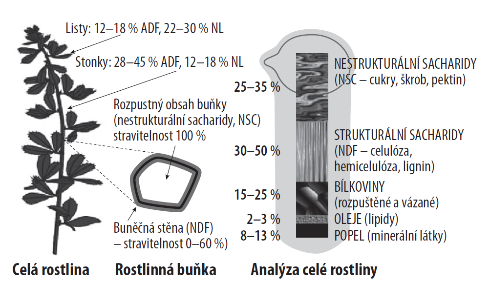 Kŕmna hodnota ďateliny lúčnej a lucerny je koncentrovaná v listoch rastúcich rastlín. Listy obsahujú 70% bielkovín celej rastliny, až 90% celkových minerálnych látok a výrazne menej vlákniny. Zachovať maximálne množstvo listov na zozbieranej rastline je potrebné na dosiahnutie optimálnej kŕmnej hodnoty týchto siláž z krmovín.