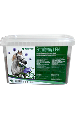 - Extrudovaný ľan s pšeničnými otrubami je doplnkové energetické krmivo, ktoré je vďaka vysokému obsahu tuku vhodné pre kone v záťaži, pre gravidné kobyly pred ožrebením, v období prelínania srsti a pod.